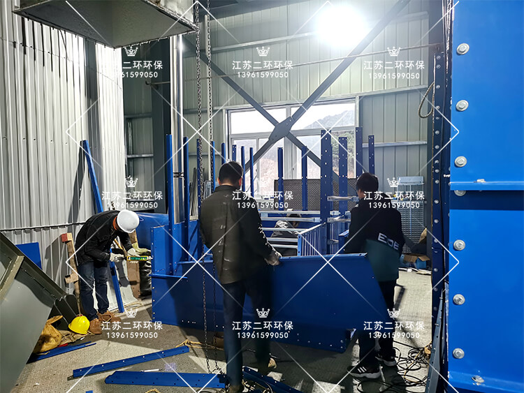 安裝方案:扁布袋除塵器拆散后,碎片化從門窗進場,然后模塊化組裝,積木式拼裝,滿足業主不破壞廠房外觀要求。