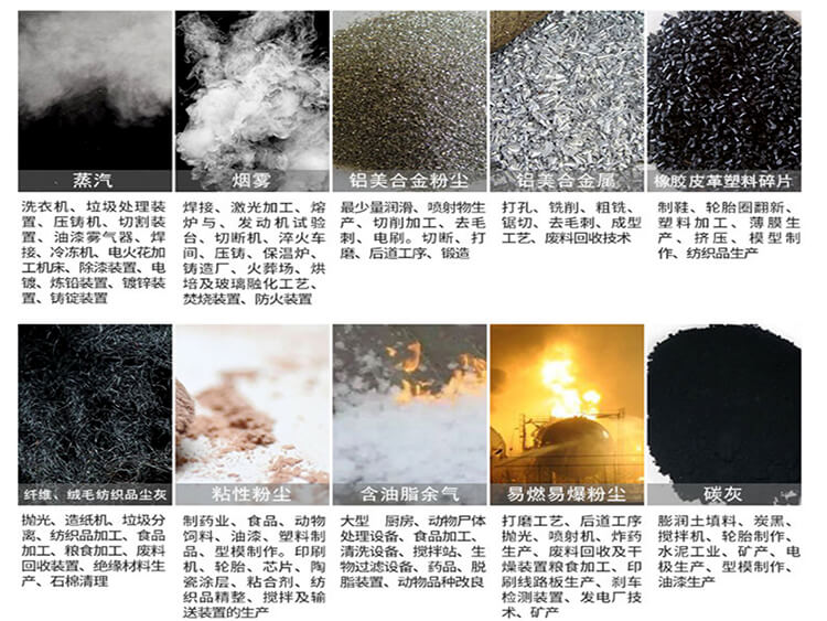 鋁鎂金屬材料打磨工序、易燃易爆的的工序、具有黏結性的潮濕煙塵氣體。