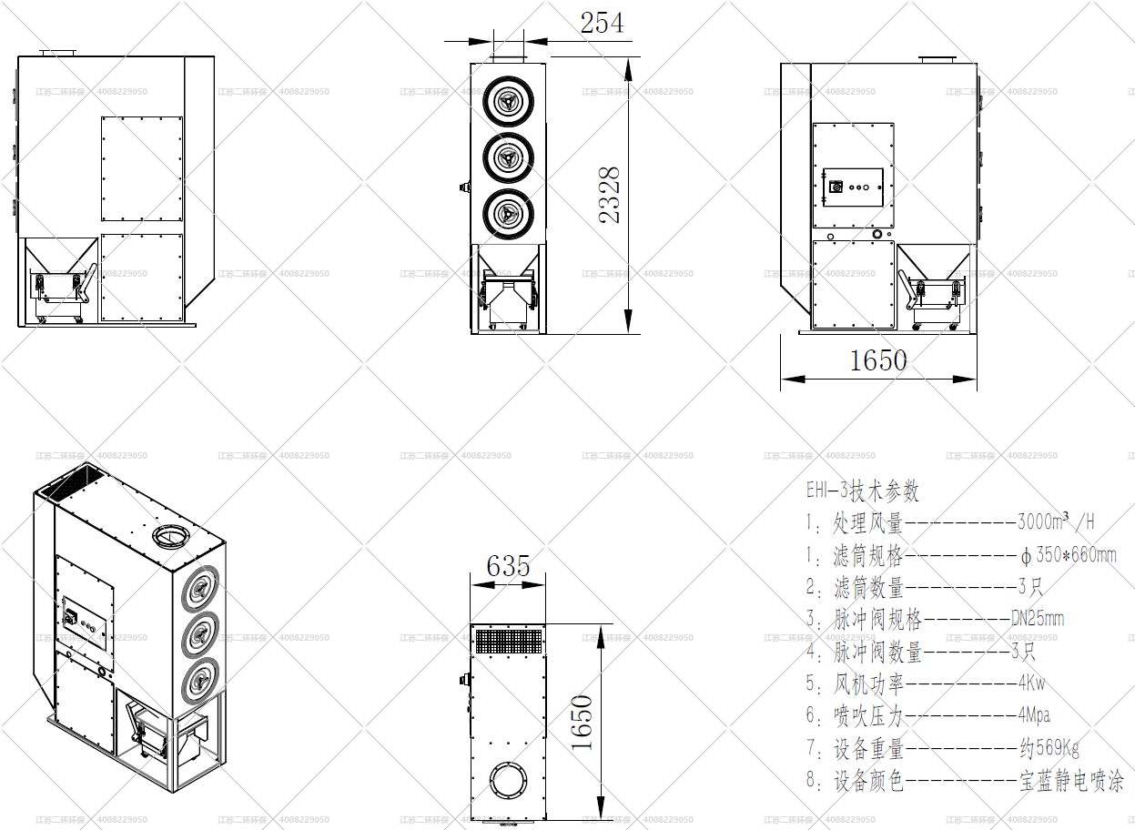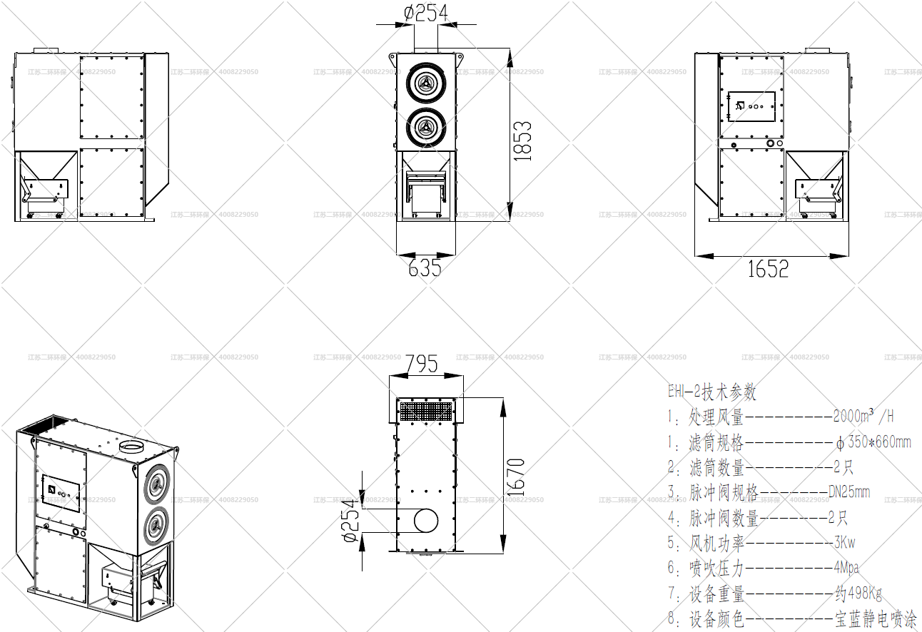 EHI-3型激光切割濾筒除塵器技術圖(下圖)