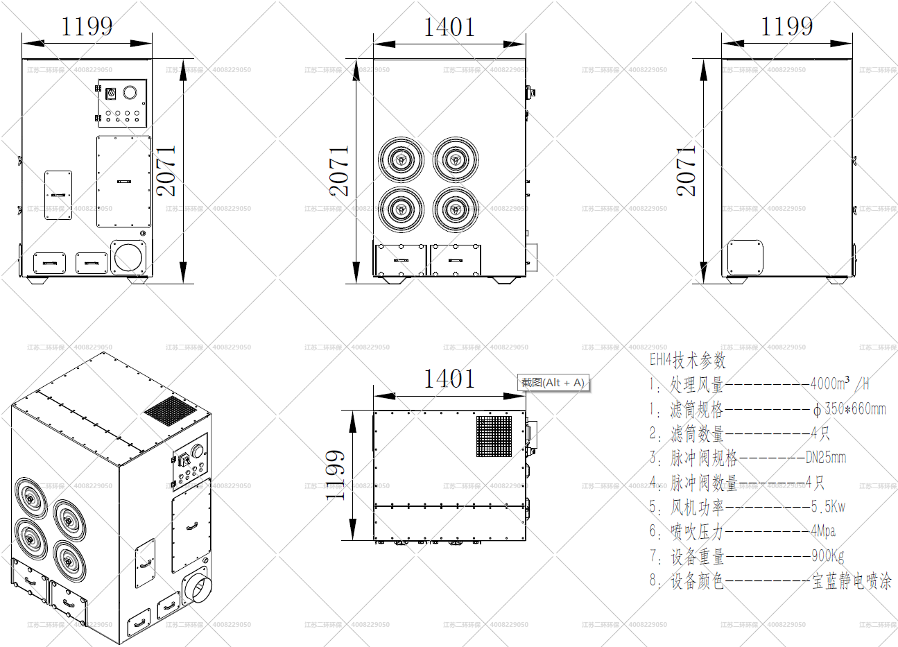 EHI-4N型激光切割濾筒除塵器技術圖(下圖)