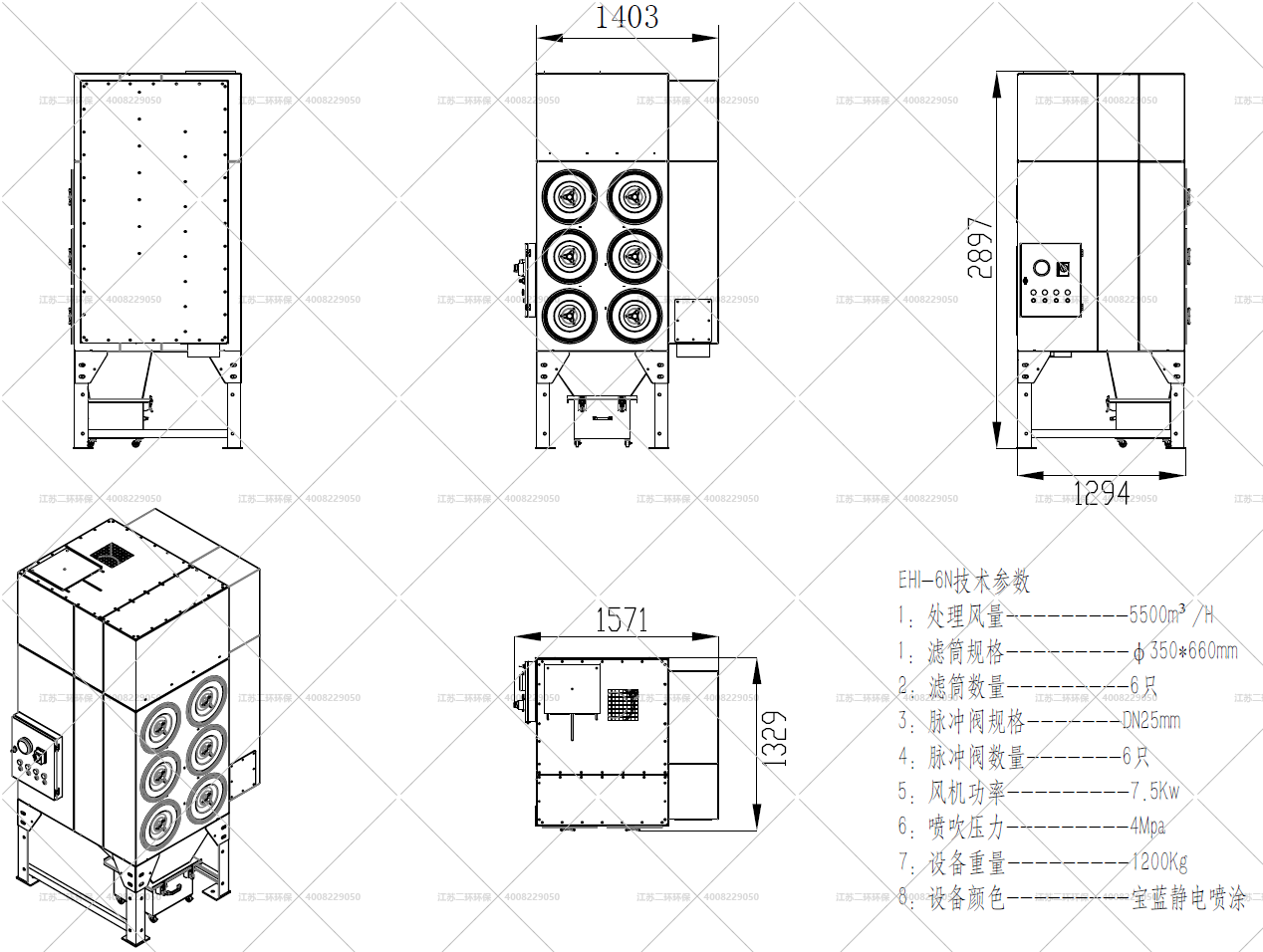 EHI-6型激光切割濾筒除塵器技術圖(下圖)